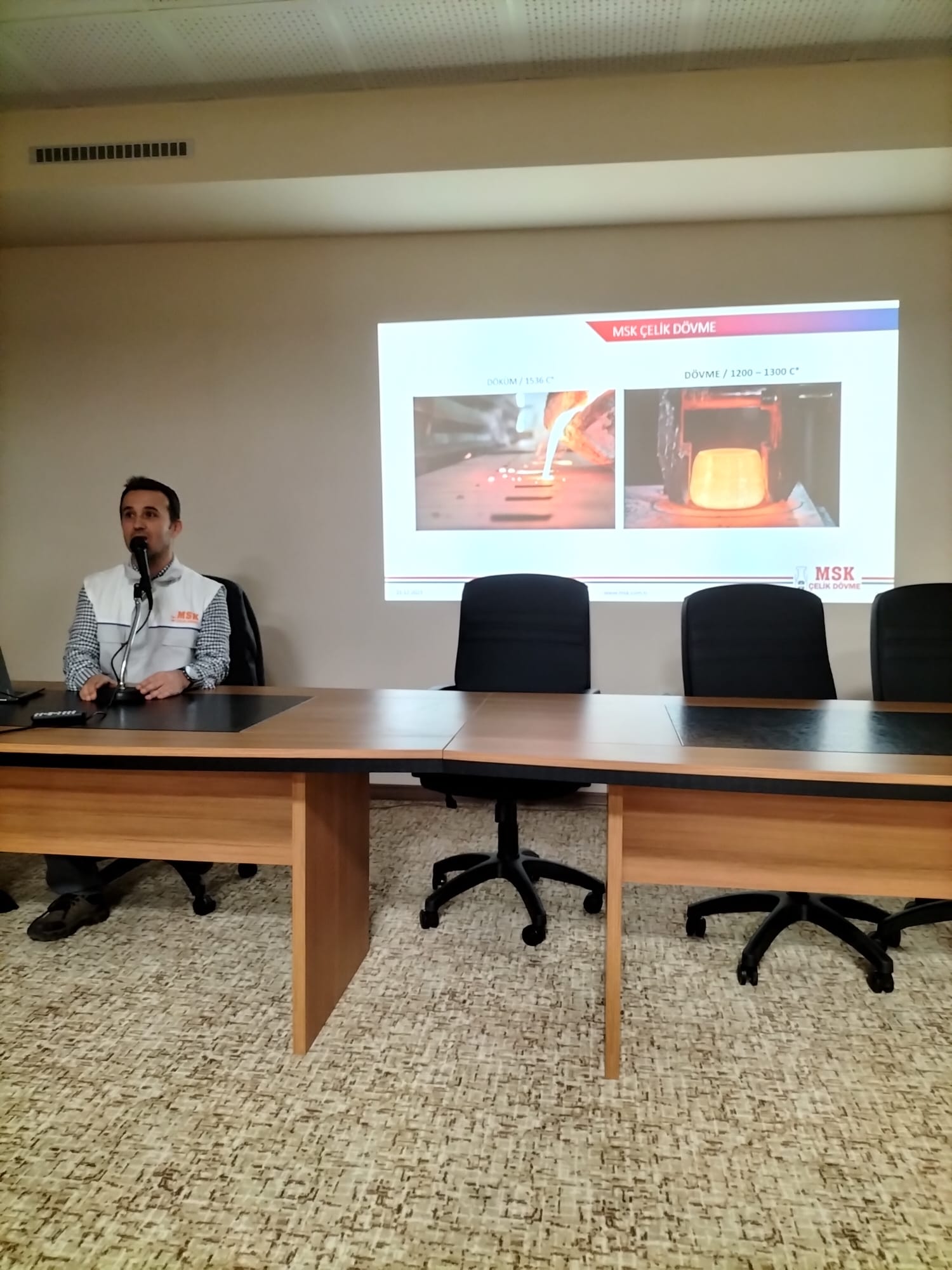 21.12.2023 tarihinde Meslek Yüksekokulumuz Makine ve Metal Teknolojileri Bölümü tarafından organize edilen ve MSK Çelik Dövme firması Mühendislik Müdürü Bülent BAŞYİĞİT tarafından öğretim elemanları ve öğrencilerin katıldığı "Dövme Çelikler" konulu Eğitim Semineri düzenlenmiştir.
