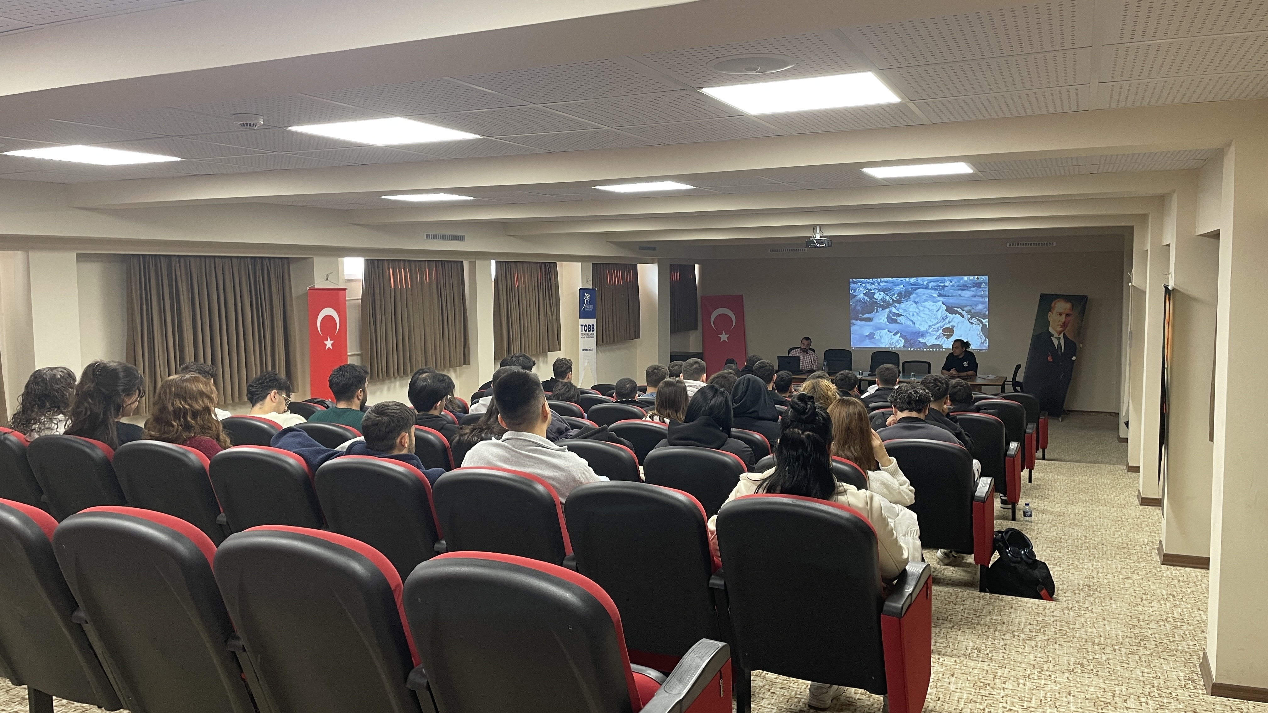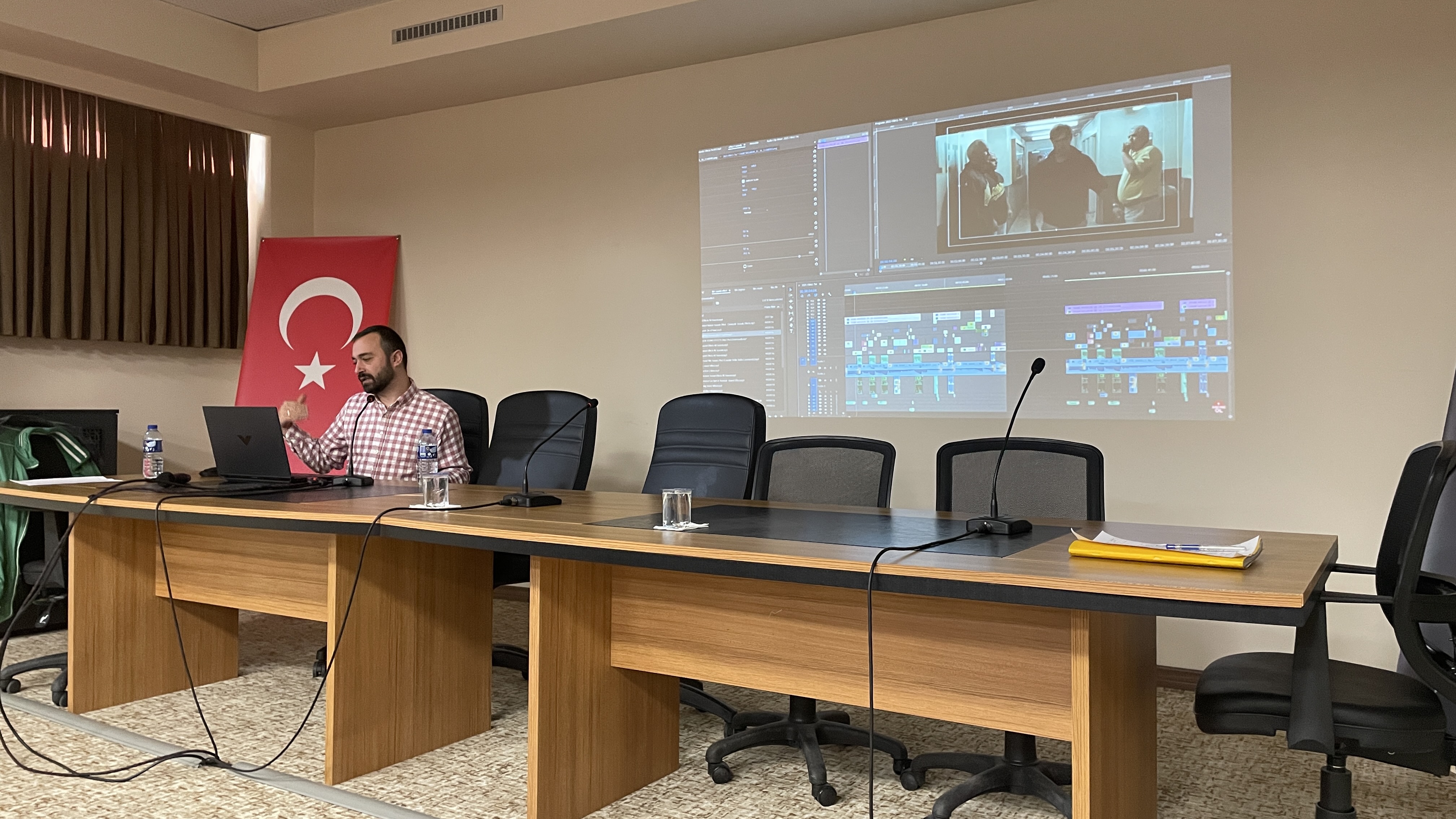 Sektördeki tecrübesi ve yaptığı işler ile öğrencilerin ilgisini çeken Vahit Topçu tarafından sunum boyunca grafik tasarım süreçlerinin temel prensipleri, dijital içerik üretiminde kullanılan yöntemler, animasyon teknolojilerinin gelişimi ve sektörde kullanılan başlıca yazılımlar hakkında kapsamlı bilgiler paylaşıldı.