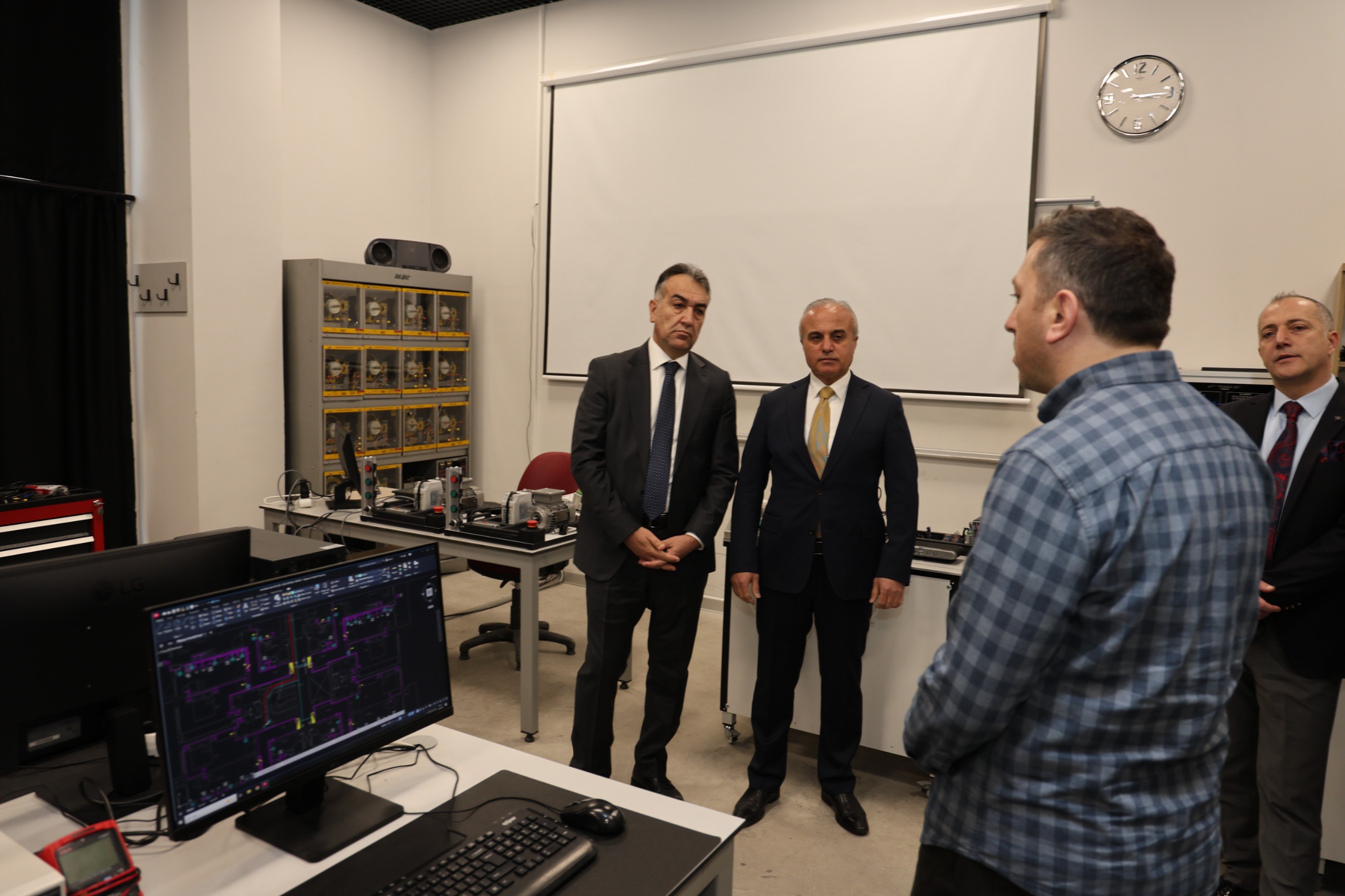 Yüksekokul bünyesindeki atölye ve laboratuvarları gezen Sayın Çağatay, burada öğretim elemanlarıyla bir araya gelerek atölye ve laboratuvarlardaki teknik imkânları ve uygulama alanlarını yerinde inceledi.